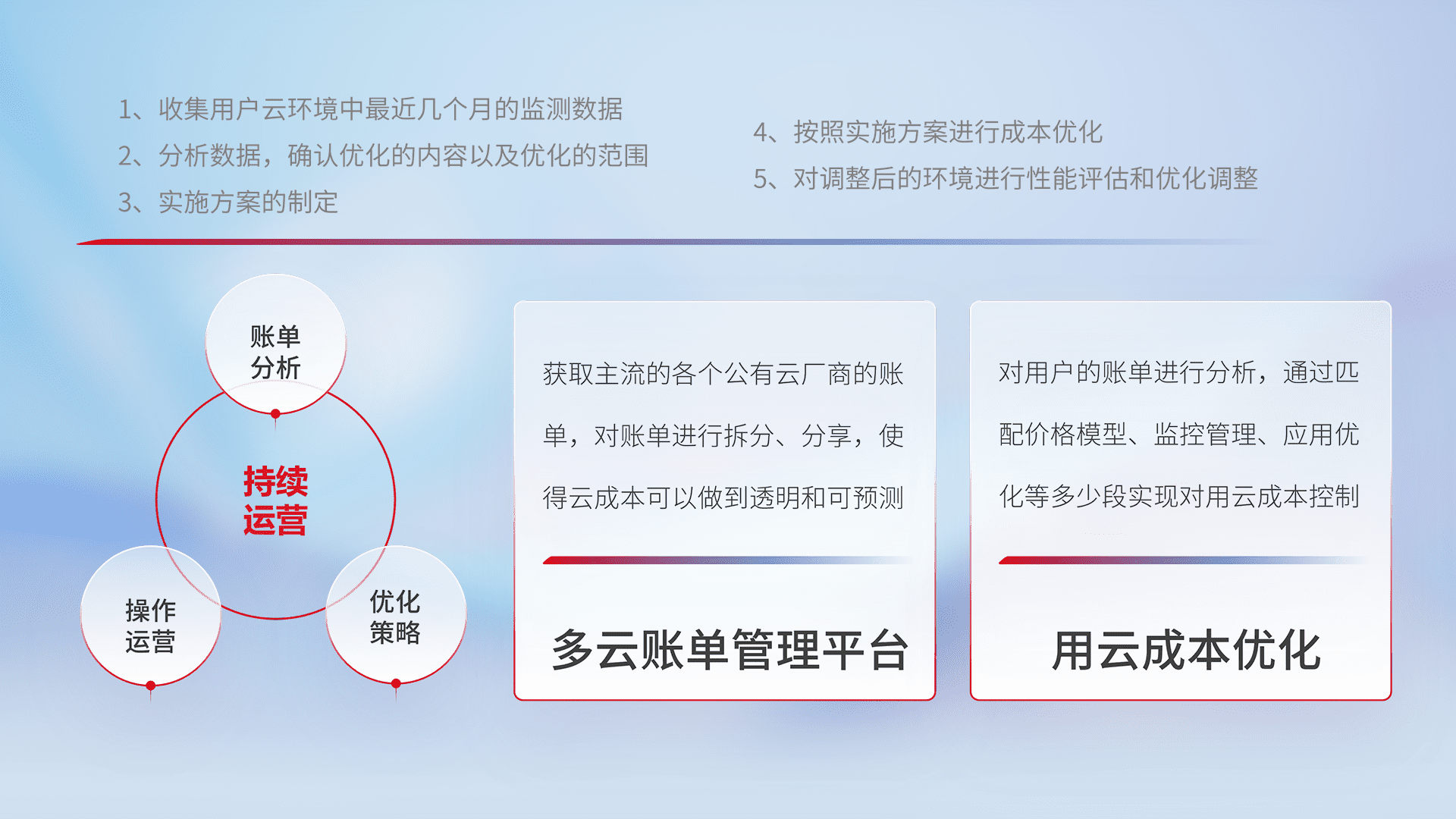 监控业务系统资源开销,,,对资源的消耗精确计量,,,实现费用的透明化管理,,不断提升资源使用率,,,,调整资源购买方式,,,降低资源费用成本,,,,用云成本可预测、、用云费用可优化,,云资源配额有据可依。。
